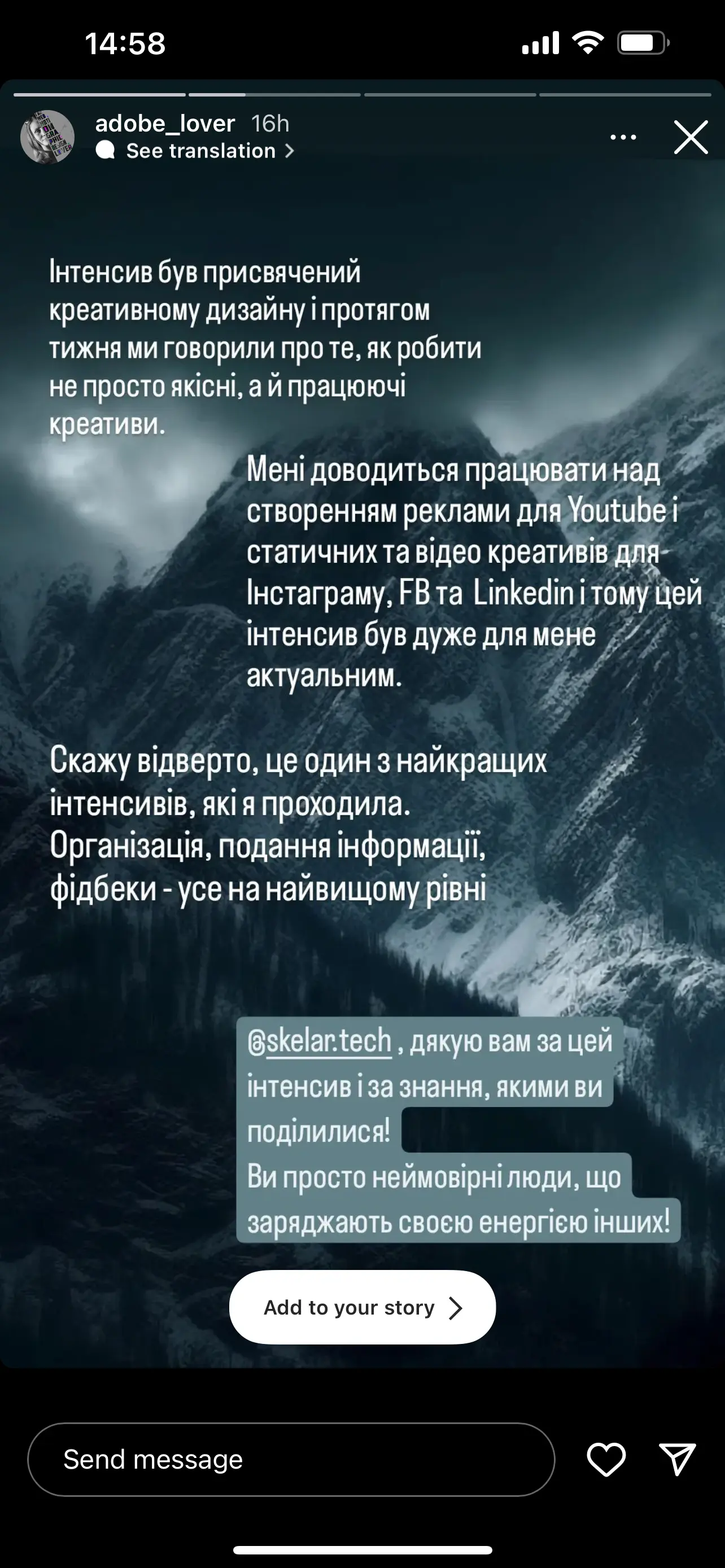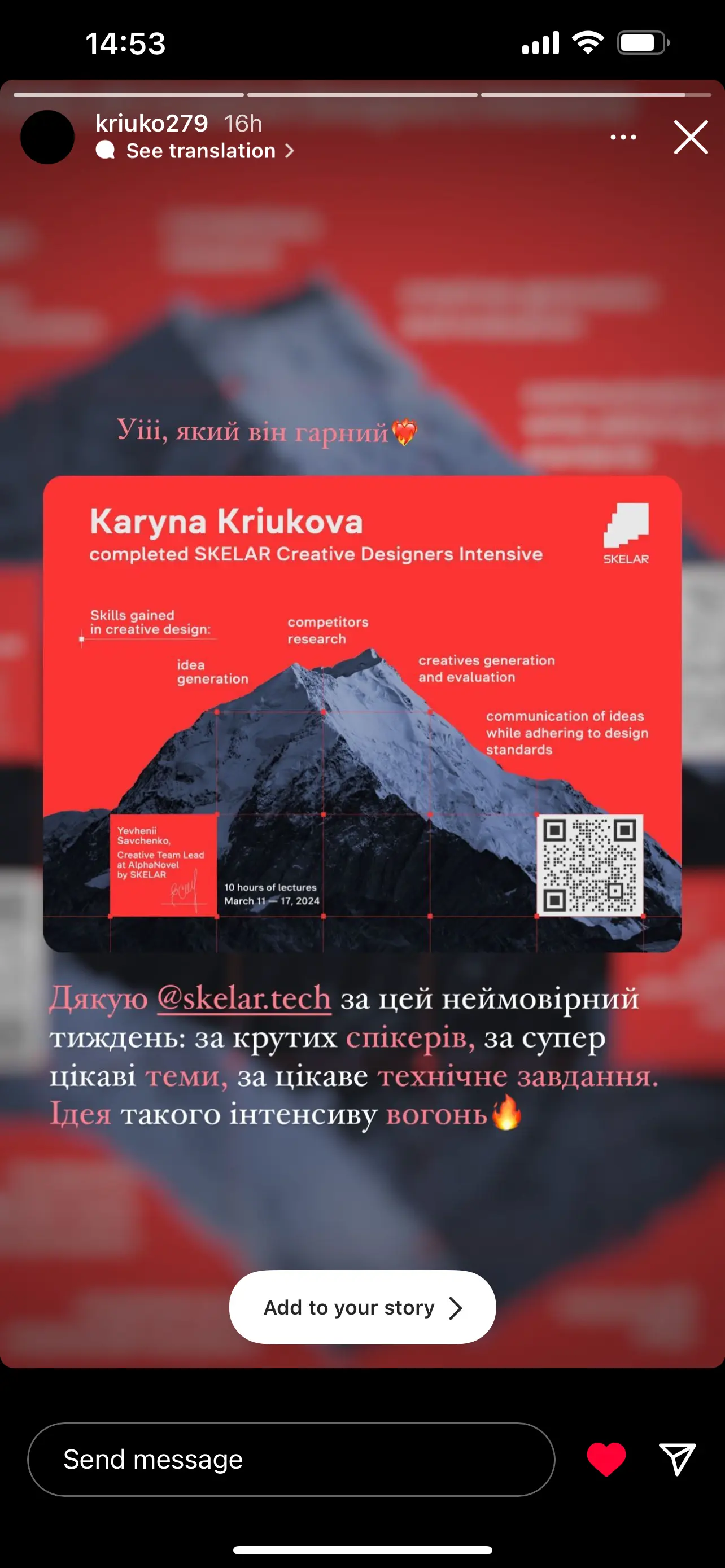 І для людей зі схожим підходом ми даємо спробу пройти стажування на креативного дизайнера.