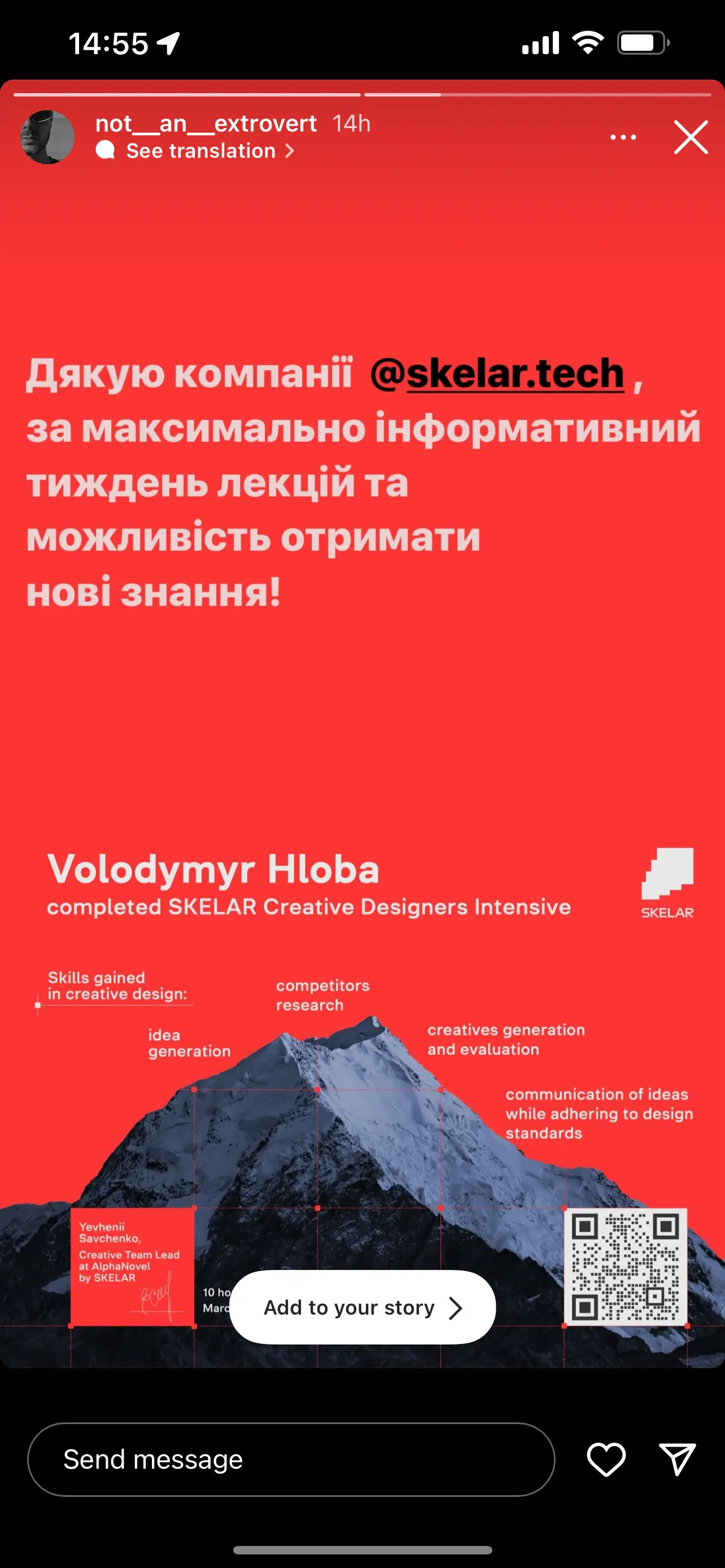 Ми в SKELAR полюємо на можливості та завжди відкриті до тих, що трапляються нам на шляху, або створюємо їх самі.