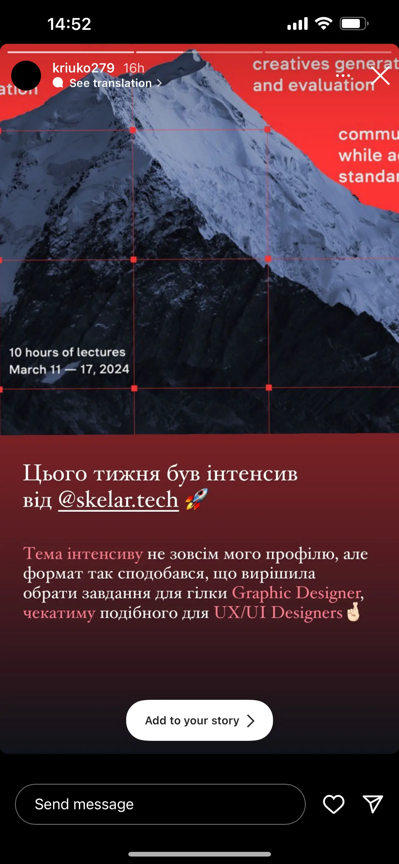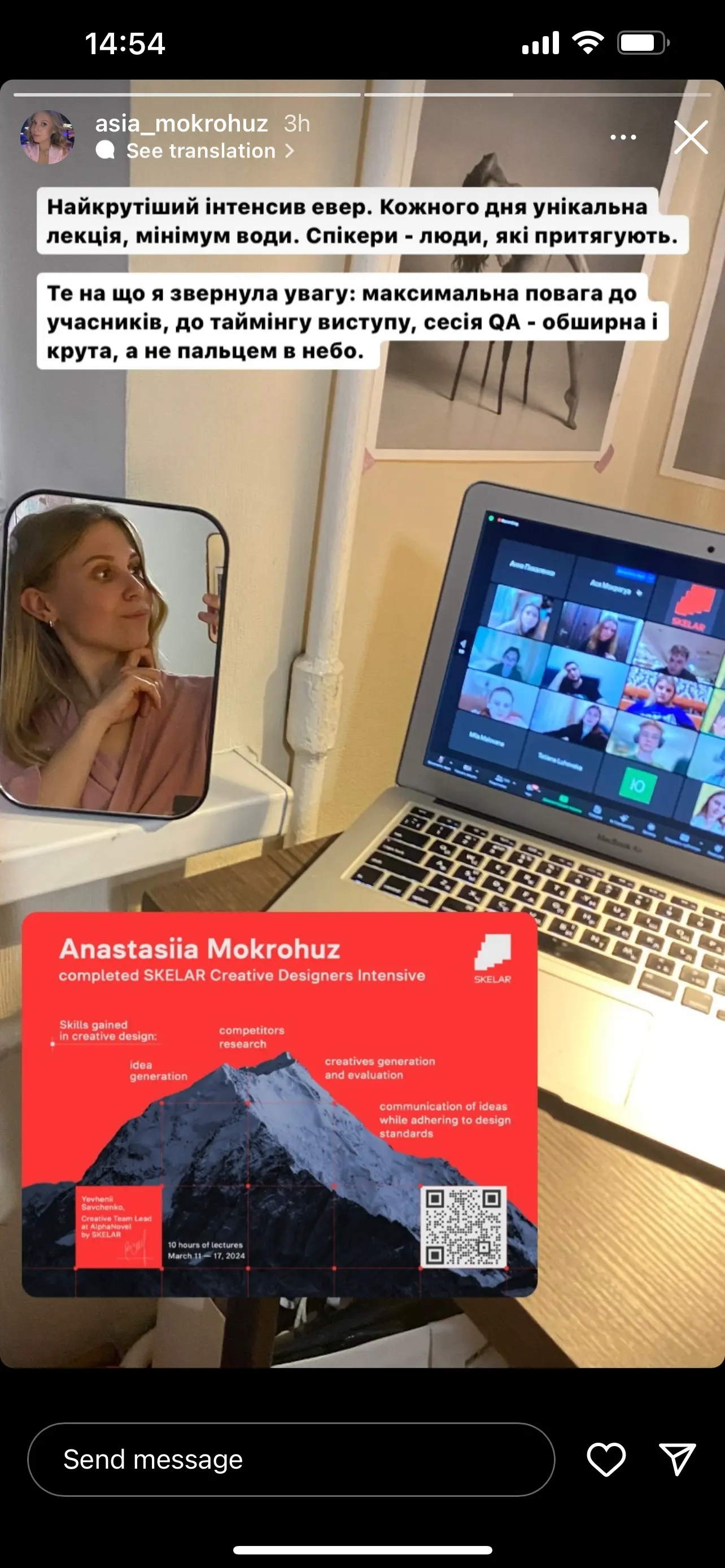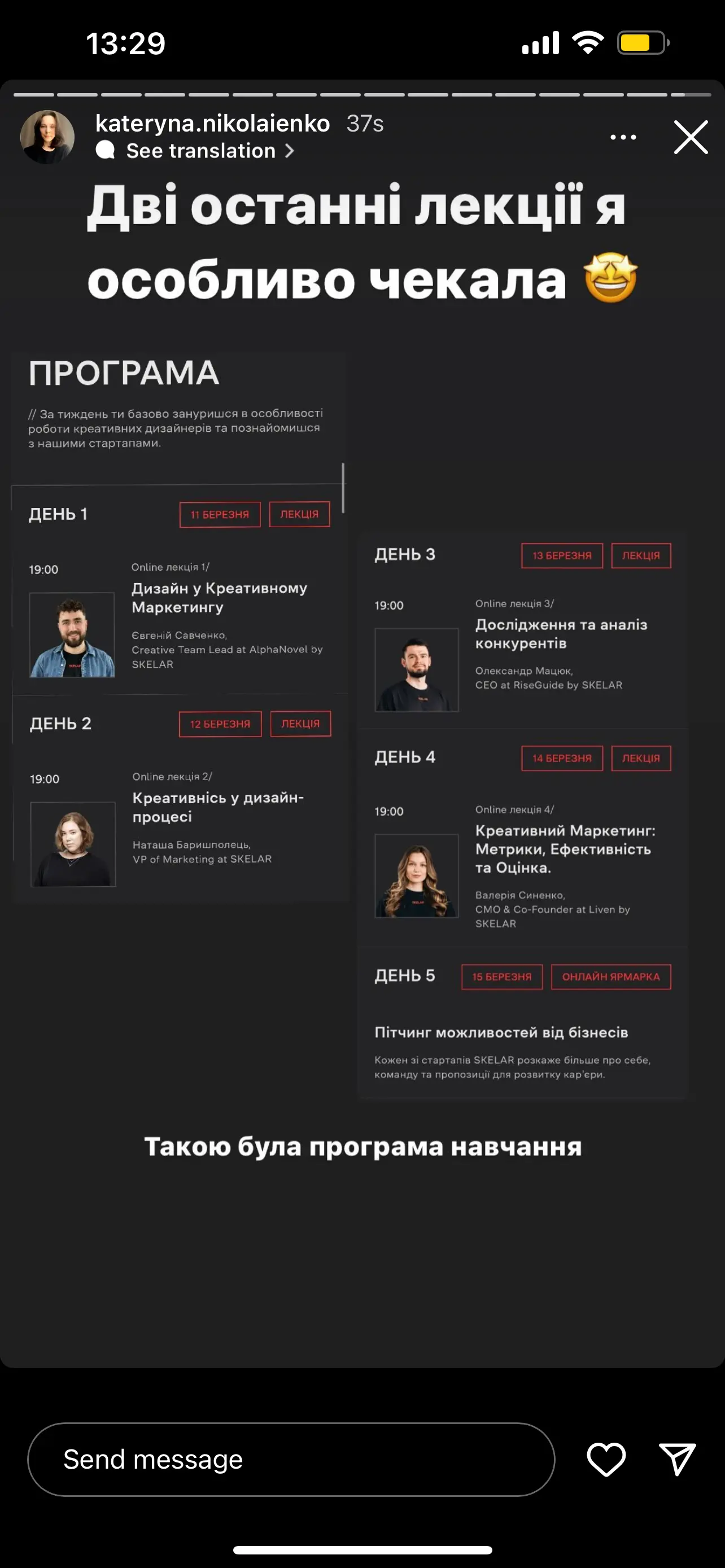 // За два тижні ти базово зануришся в особливості роботи креативних дизайнерів та познайомишся з нашими стартапами.